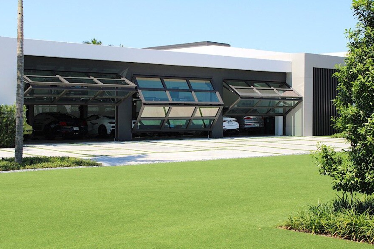 We recently had the pleasure of working with Crowell Builders in Austin, Texas, for one of their luxury custom homes. The architects for this project wanted a modern hydraulic door design for the 2 Lamborghini garage openings. The approximately 22′ and 11′ wide door openings for this private residence included Premier Door Co.’s Zero Hinge Collection® hydraulic garage door design.