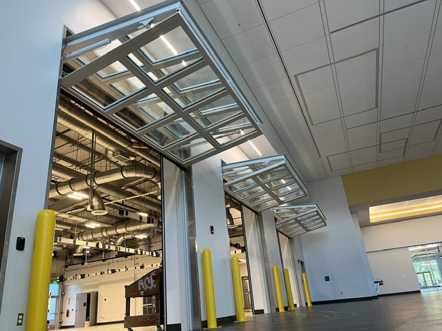- Hangar doors: Purpose-built aircraft hangar doors support Michigan’s aviation infrastructure at Coleman Young International Airport, Oakland County International and throughout the state’s extensive private aviation network, with custom sizing accommodating openings up to 130 feet wide.
